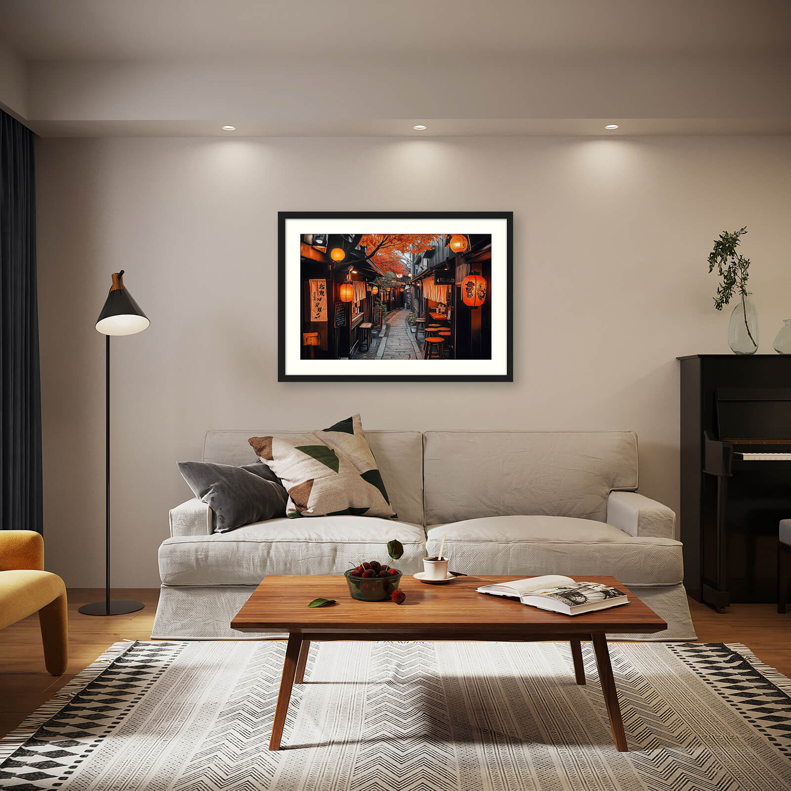 Styled in a modern take on Street Scenes with rich visual detail, this artwork highlights the warm glow and quiet stillness of Japanese night streets. It’s a perfect choice for lovers of Japanese culture, nostalgic cityscapes, and cozy interiors.