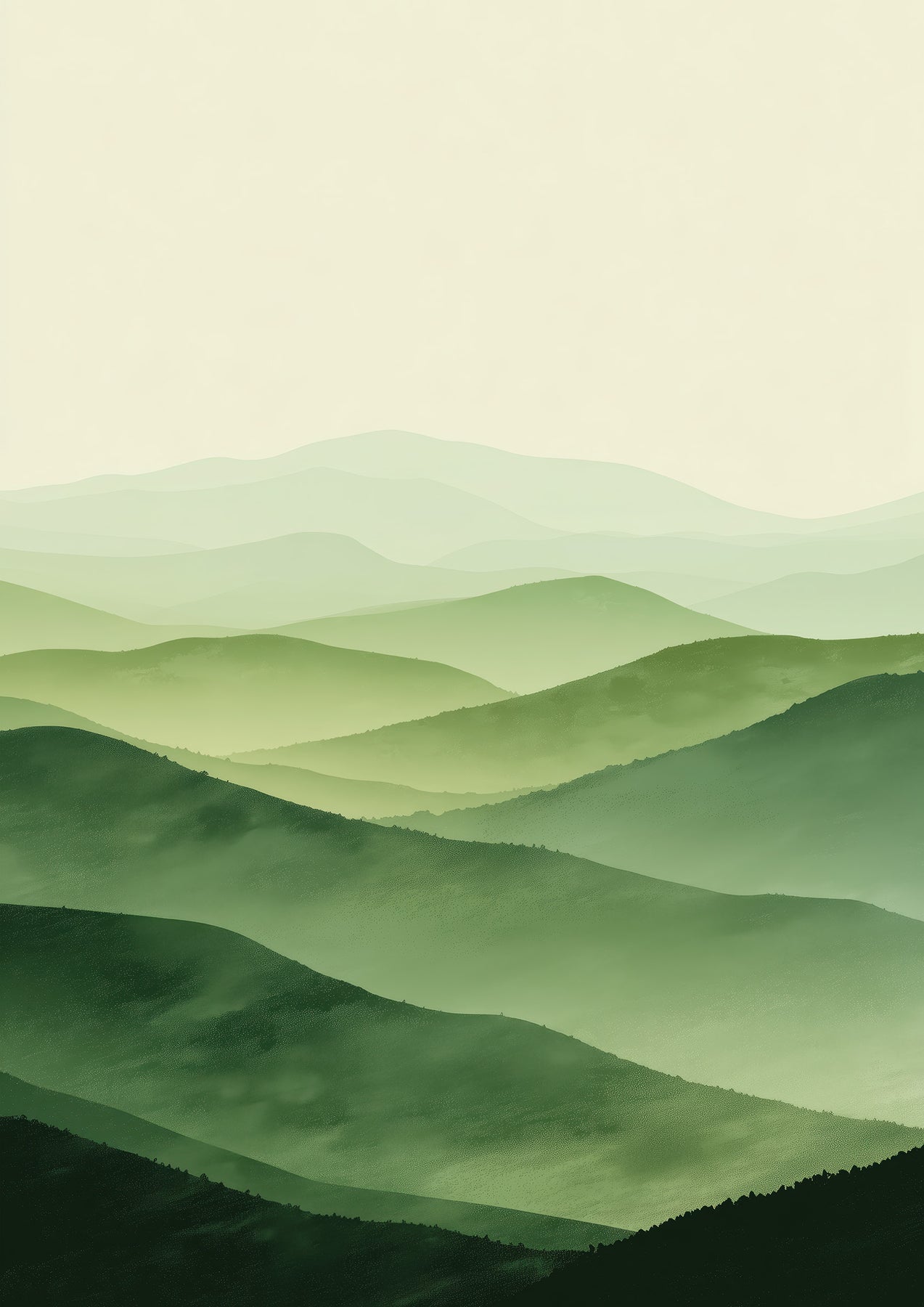 This green wall art creates a calming focal point with its layered composition and soothing gradient. Perfect for living rooms, bedrooms, or meditation spaces. Ideal for lovers of mountain wall art themes, green wall decor, or Zen inspired art.