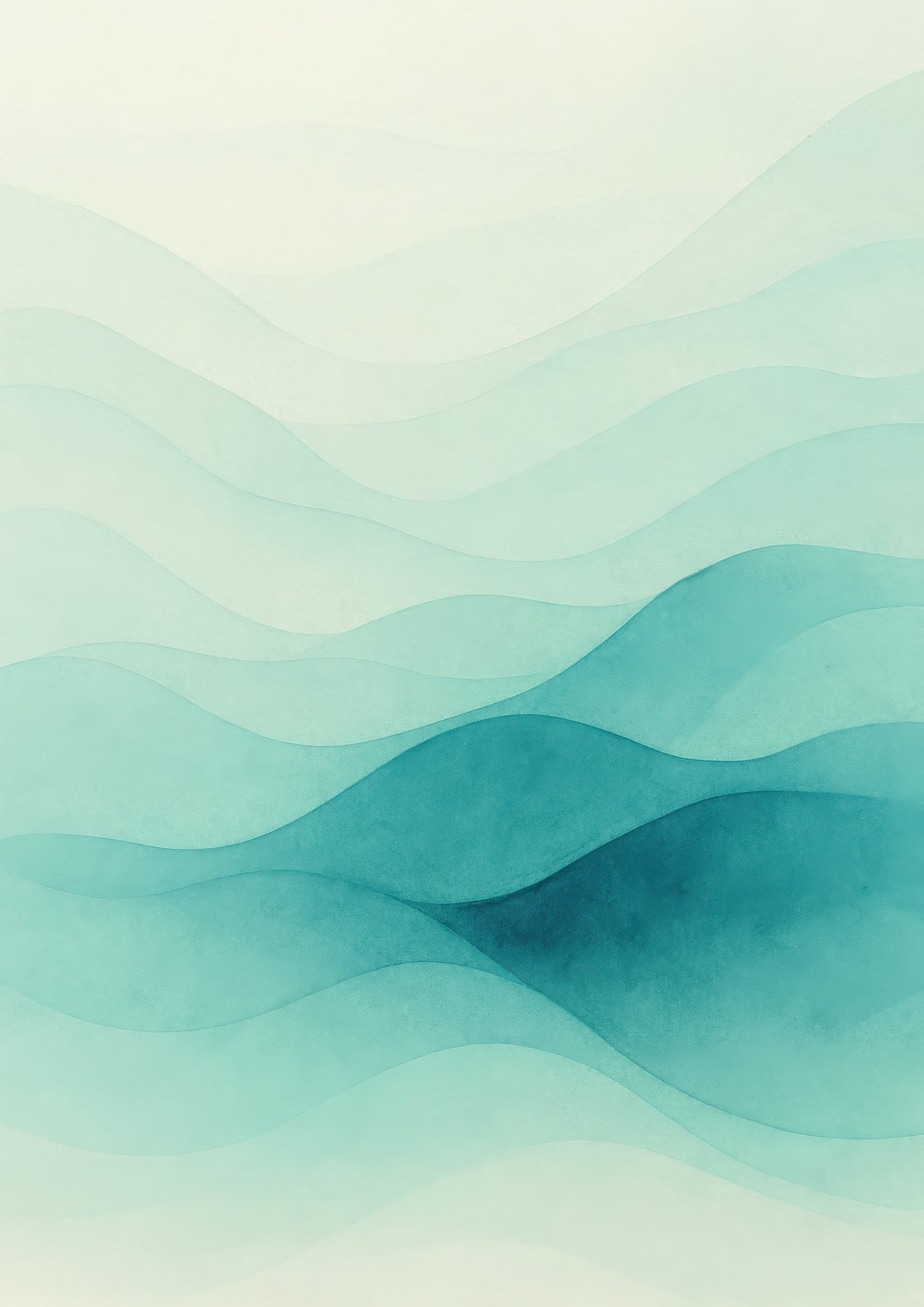 Blue green abstract wall art featuring layered teal and aqua forms that flow gently like water. This aqua abstract wall art creates a soothing, organic effect perfect for adding calm and balance to a space. Its minimalist abstract print style ensures it complements modern, Japandi, or Scandinavian interiors.
