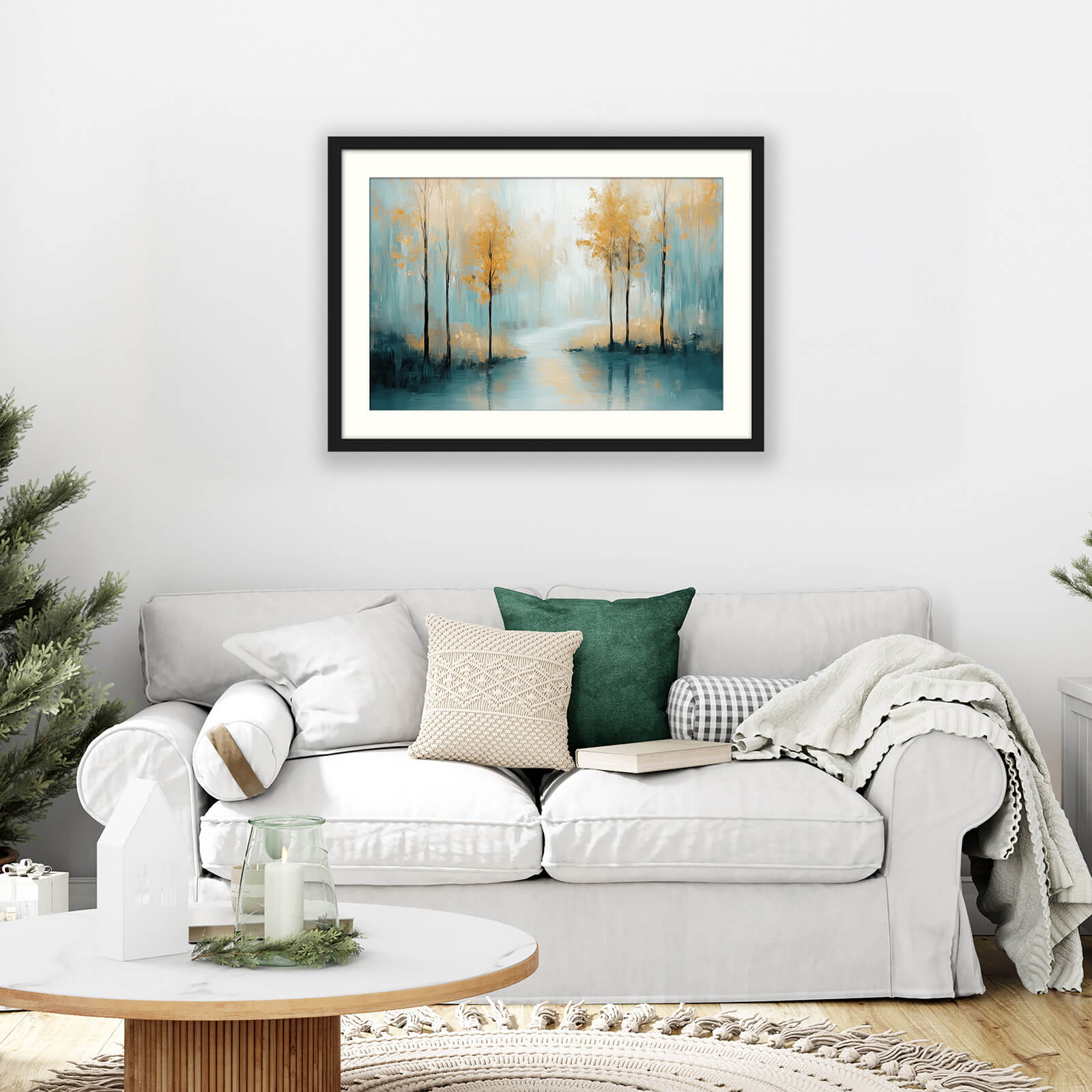 Ideal for bedrooms, living rooms, or hallways, especially above a low console or beside tall furniture where vertical trees and reflections can draw the eye upward. The balanced color palette works well with neutral or earth-toned interiors, and this art is especially suited for spaces styled with Japandi, Minimalist, or Nature-Inspired décor.